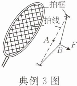 ③ 测出使球拍拍面中心位置 A 移动 Δx 距离(即 B 点)的力 F;