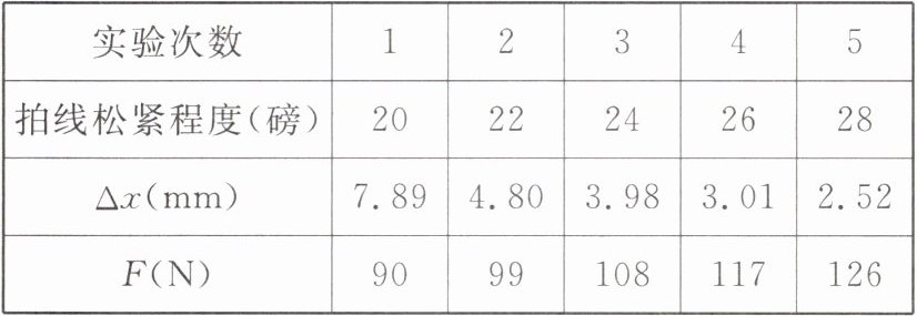 [2025·舟山普陀区二模]某科研小组为了探究羽毛球撞击球拍时,球拍所产生最大力与拍线松紧程度(单位:磅)的关系,进行如下实验: