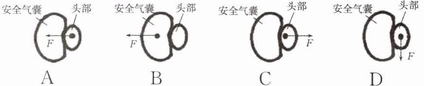 [2025·杭州校级模拟]当汽车发生严重碰撞时,弹出的安全气囊可以有效减轻乘员受到的伤害。下列能正确表示人与气囊相撞时,安全气囊对人的头部的作用力是(