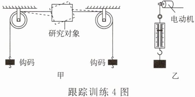 。(2)将图甲中静止的研究对象转到虚线位置,松手后发现研究对象发生转动。据此可以得出结论:作用在物体上的两个力需要满足的条件是