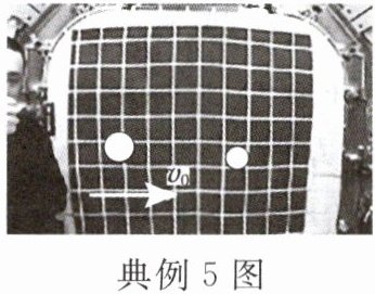 典例5 [2024·宁波海曙区一模]如图所示是我国航天员在太空失重环境下演示的钢球碰撞实验:实验中右侧钢球质量为$m_0$,处于悬空静止状态;左侧选用了6种质量不同的钢球,其质量大小关系为$m_1>m_2>m_3>m_4>m_5>m_6$($m_4 = m_0$)。将左侧钢球均以速度$v_0$向右推出,正面撞击右侧钢球,记录撞击后两球的运动状态(如表所示),撞击后左侧钢球速度大小关系为$v_1>v_2>v_3$,$v_5>v_6$。实验中钢球均无旋转、无相互摩擦。
