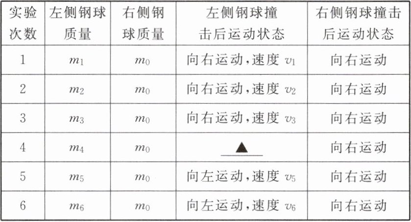 。(3)请根据表中实验数据合理推测:第4次实验中,左侧钢球撞击后的运动状态为