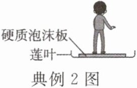 (2)莲叶受到的压力等于人的重力和泡沫重力之和,大小为$F_{2} = G_{人} + m_{泡沫}g = 600N + 3kg×10N/kg = 630N$,