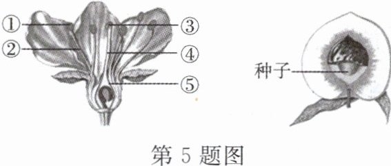 5. 如图所示为桃的花和果实的示意图,下列说法正确的是