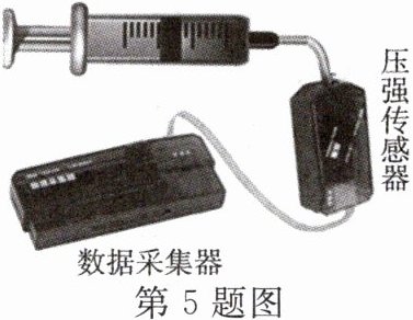 5. [2024·嘉兴模拟]小常用如图所示的装置探究一定质量的气体,在温度不变时,压强与体积的关系。实验器材如下:注射器(活塞连接弹簧测力计)、润滑油、压强传感器等。