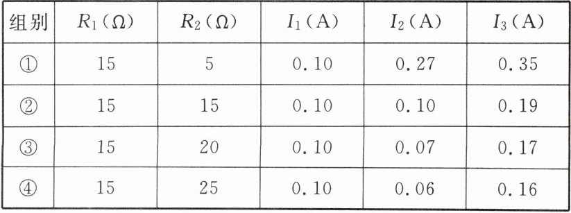 (3)表格中满足“干路电流等于各支路电流之和”的实验组别