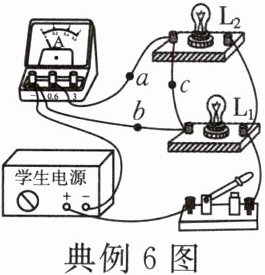 典例6 如图所示是小明在测量电流时连接的电路。电路的连接存在错误,下列操作及说法正确的是(