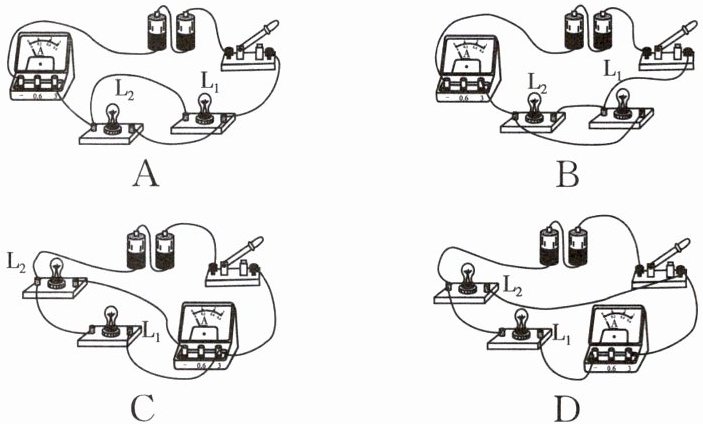 跟踪训练4 [2024·台州仙居县二模]某同学学习了电流测量后,连接了下列电路,其中电流表测量通过小灯泡L₂的电流的是(