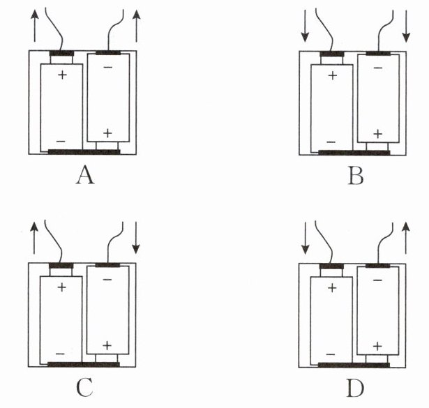 5. [2025·宁波江北区二模]电源可以使电荷定向移动形成持续电流。下列选项为电动玩具中电池的安装情况示意图。当电动玩具工作时,电流方向标注正确的是(