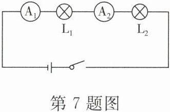 7. 某同学希望通过比较电路中不同位置的电流表的读数来研究串联电路的电流规律。