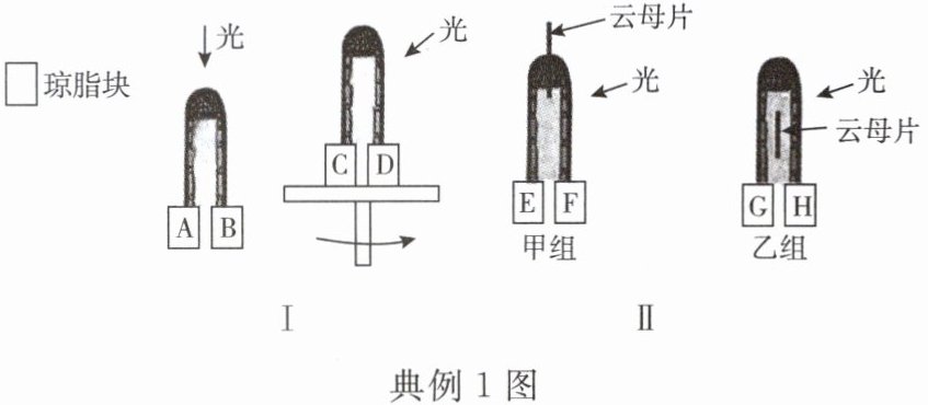 典例1 [2025·宁波校级模拟]生长素是重要的植物激素之一,可以从产生部位运输到作用部位,加快植物细胞生长速率。生长素可以用琼脂块进行收集并检测含量,科研小组做了如图Ⅰ所示的两组实验。