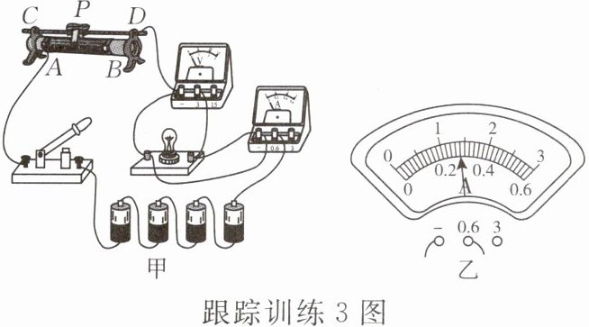 跟踪训练3 [2025·浙江多校联考]为测量小灯泡的电阻,小科设计了如图甲所示的实验电路。其中,电源电压为 $6V$ 恒定不变,小灯泡的额定电压为 $2.5V$,滑动变阻器①的规格为“$20Ω$ $1A$”,滑动变阻器②的规格为“$10Ω$ $1A$”,导线电阻忽略不计。