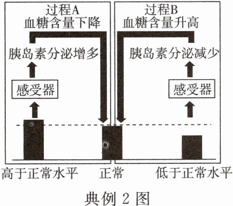 典例2 [2025·温州鹿城区二模]利用模型可以更形象地解释某些科学现象。为了动态展示如图所示血糖调节的部分过程,小明制作了相应的模型,模拟材料及过程如表所示。