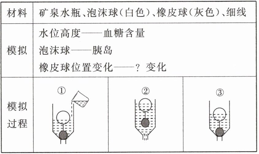 (3)Ⅱ型糖尿病是一种由胰岛素分泌延迟引起的疾病。为了能有效模拟这种类型患者的血糖调节机制,与正常血糖调节相比,小明制作的模型装置中的材料可如何调整?