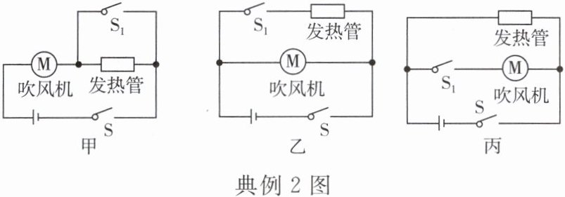 (1)图甲电路中,当两个开关都闭合时,发热管被短路,电路中只有吹风机接入电路,此时电流较大,吹风机吹冷风;当只闭合S时吹风机和发热管串联接入电路,此时电路中的电流较小,适合低温烘烤食物,与要求的工作模式不符。
