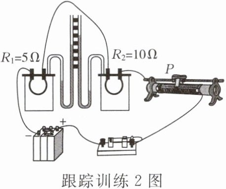 (选填“相等”或“不相等”);观察$U$形管内液面高度差可知R₂