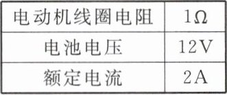 (3)电动机停止转动还持续通电时,消耗电能全部转化为内能,持续通电1min产生热量Q=W=U²/R′t=(12V)²/1Ω×60s=8640J。