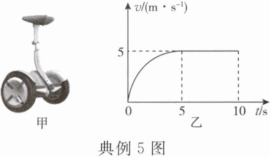 (2)如图乙所示为小明某次骑行平衡车时运动速度随时间变化曲线。若该平衡车自重为$120N$,运动过程中所受阻力为总重的$0.1$倍,请计算小明骑行过程中,电动车在$5~10s$内牵引力做功的功率为多少?