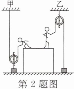 2. [2025·慈溪校级模拟]如图,甲、乙两人用不同的装置,在相同时间内把质量相等的货物匀速提升到同一平台,不计绳重及滑轮的摩擦。下列说法正确的是(