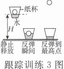 小科将装有水和乒乓球的纸杯在一定高度静止释放,下落到达地面后,现象如图所示。乒乓球静止释放时与反弹到最高点时相比,下列说法正确的是(