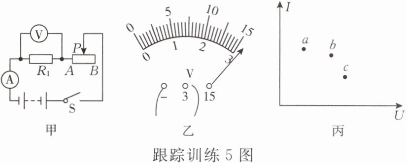 Ω。实验中三次改变R₁两端的电压测量电阻,目的是。(3)该同学继续用三个未知电阻进行实验,对应的实验数据分别为图丙中的a、b、c三个点,其中