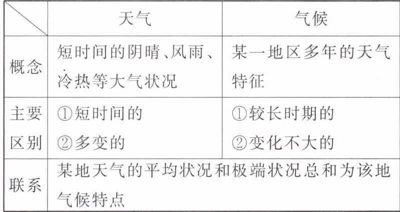 4. 天气与气候的区别与联系。