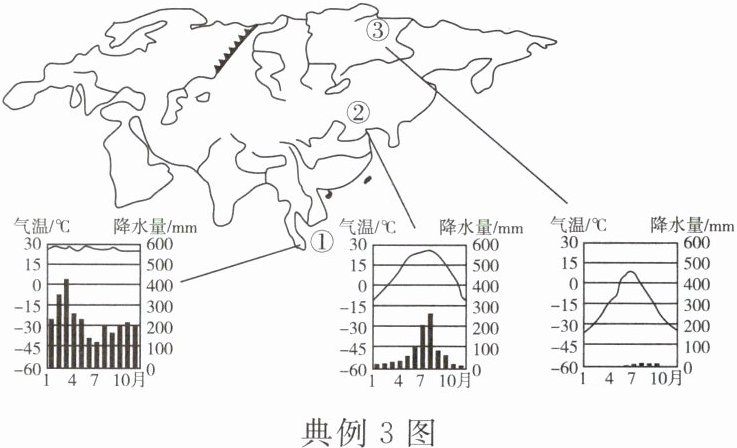 如图所示,图中①②③三地气候差异的主要影响因素是(