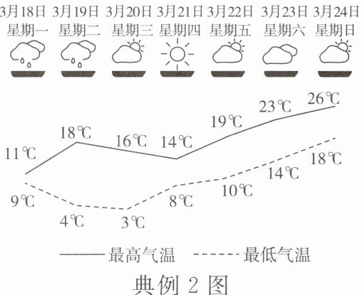 [2024·温州一模]如图所示是某市3月18日至24日这一周的天气变化信息,根据信息可知这一周内(