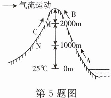 5. [2024·杭州校级模拟]地形对气温和降水会有较大的影响。地势高低不同,气温也有明显的差异,根据图示可知,N处的气温约为