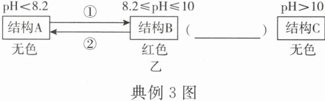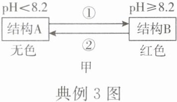 典例 3 [2025·台州一模]物质的结构决定物质的性质。无色酚酞试液遇碱会变红色,这是因为当环境的 pH 大于或等于 8.2,酚酞分子的结构会发生改变。若分别用 A、B 表示酚酞在不同酸碱度环境中的结构,可建构如图甲的模型。