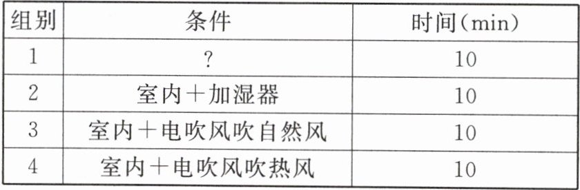 (2)为进一步探究大气的温度、湿度和气流速度对植物蒸腾作用强度的影响,该兴趣小组利用B装置设计了如下探究实验: