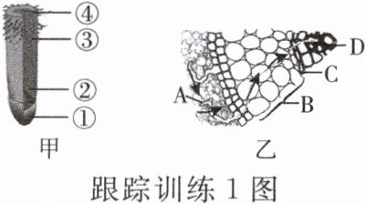 [2024·杭州西湖区一模]图甲是根尖结构示意图,图乙是水分进入根部的途径示意图。