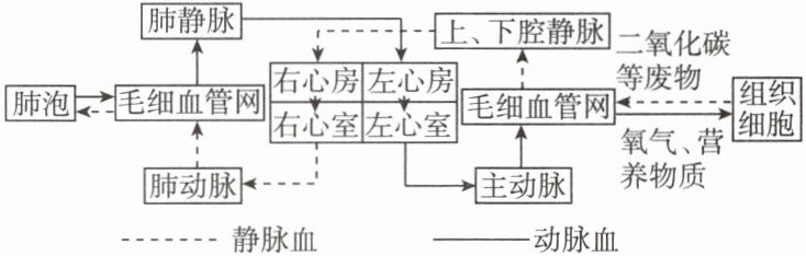 1.两面凹的圆饼 血红蛋白 运输氧 白细胞 加速血液凝固和防止伤口大量出血及阻止细菌入侵 白细胞 4.体循环 肺循环