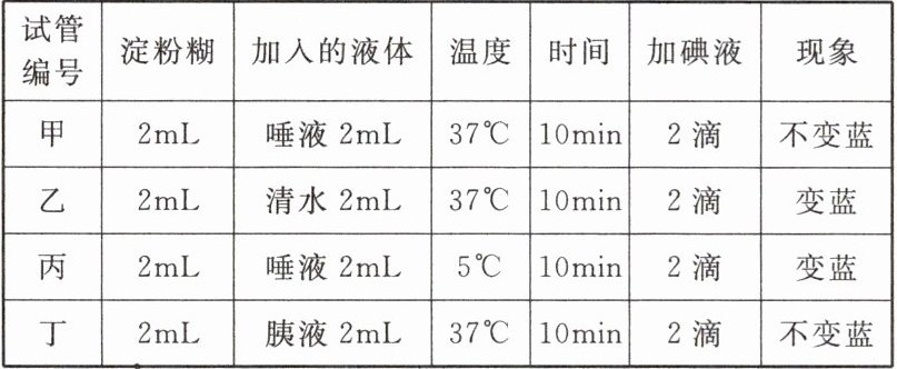 (2)通过对试管乙和试管丁的分析,我们可以得出的结论是