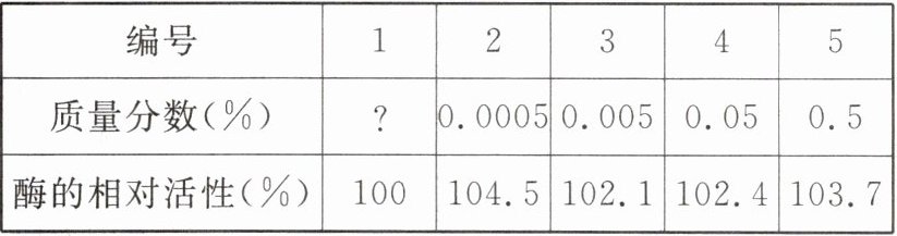 ,其他试管中按表格要求分别添加5mL不同质量分数的氯化钠溶液,放在相同温度的水中恒温水浴。③20min后测定各试管中菠萝蛋白酶的活性,并计算其相对活性。数据如表所示: