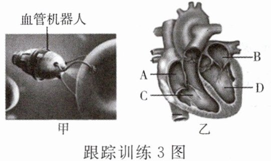 (填某种血管名称)的直径。它经过上腔静脉最先进入心脏四个腔(如图乙所示)中的A
