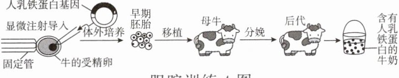 [2024·衢州一模]人乳铁蛋白是人类母乳中的一种天然蛋白,不仅能提高机体免疫力,还是婴幼儿生长发育不可或缺的成分。如图所示是科学家利用先进的生物技术,获得含有人乳铁蛋白牛奶的过程示意图。下列相关说法正确的是(