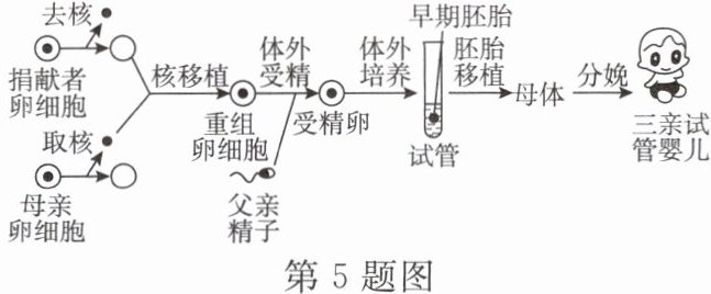 5. 医学手段培育“三亲试管婴儿”可以解决一些生育缺陷,其培养过程如图所示。