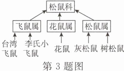 3. [2025·温州一模]2024年我国科研人员在西藏发现罕见物种——李氏小飞鼠。如图是几种鼠类动物的分类检索图,其中与李氏小飞鼠亲缘关系最近的是(