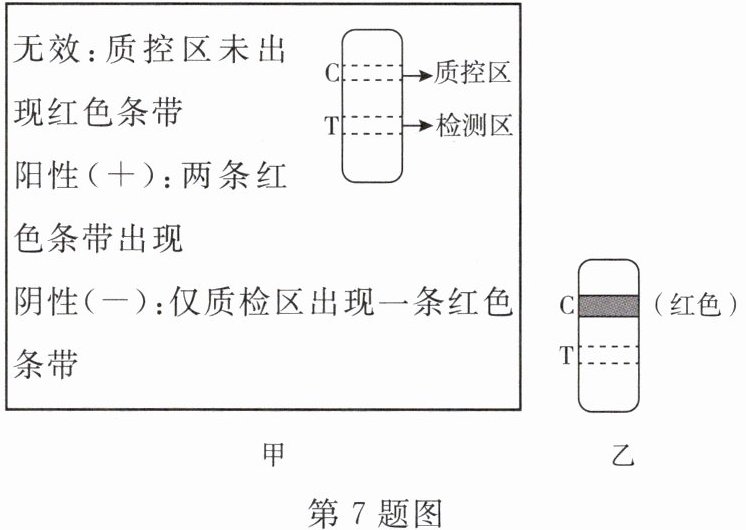 7. [2025·舟山校级模拟改编]自新冠疫情以来市场上出现了许多新冠抗原检测盒,小舟同学想知道它与经常做的核酸检测有什么不同?于是查阅了如下资料: