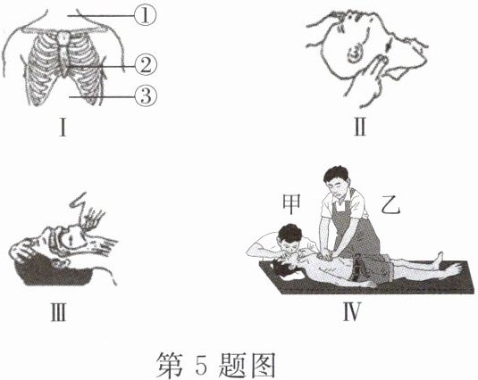 D.图Ⅳ是心肺复苏,乙先做 5 次心脏按压,甲再做 1 次人工呼吸,交替反复进行