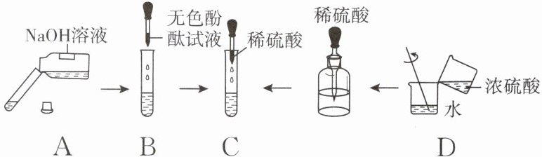 [典例 1] [2025·浙江多校联考]下列是某同学稀释浓硫酸并进行酸和碱反应的操作过程,其中操作错误的是(