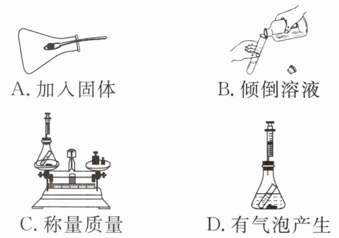 5. [2025·福建]某同学利用$H_{2}O_{2}$溶液在$MnO_{2}$作用下的反应,探究化学反应前后物质的质量关系。下列操作或现象错误的是(