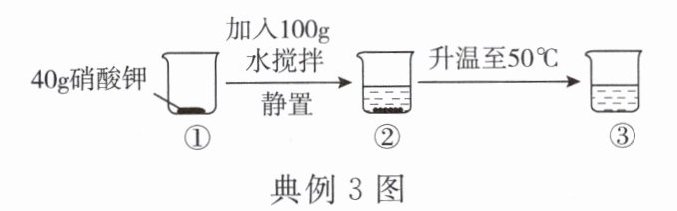 典例3 [2025·杭州萧山区校级模拟]硝酸钾在不同温度时的溶解度如表所示。在配制硝酸钾营养液时,小敏操作过程如图所示,请回答下列问题: