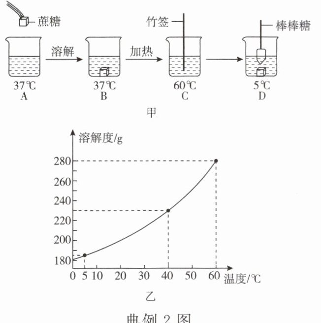 典例2 [2025·山海联盟模拟]某科学兴趣小组开展了自制棒棒糖的项目化活动,活动过程如图甲所示,蔗糖的溶解度如图乙所示。