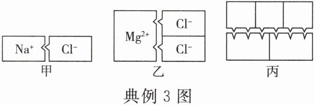 典例3 [$2025$·宁波校级模拟]如图所示,甲模型表示失去一个电子的钠离子和得到一个电子的氯离子的组合,乙模型表示失去两个电子的镁离子和两个各得到一个电子的氯离子的组合,则丙模型可以表示的化学式是(