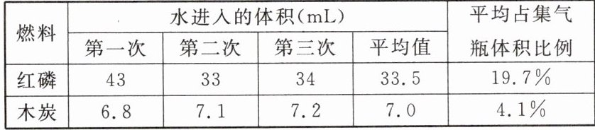 。(3)小明在计算红磷组进水体积的平均值时,去除了第一组的数据,原因是