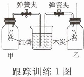 跟踪训练1 [2025·浙江多校联考]某学习小组同学设计了如图所示的装置进行实验,夹紧弹簧夹,将足量的红磷和木炭分别点燃后放入甲、乙两个集气瓶中,待反应结束,集气瓶内气体恢复至室温后,再打开弹簧夹。下列有关叙述正确的是(