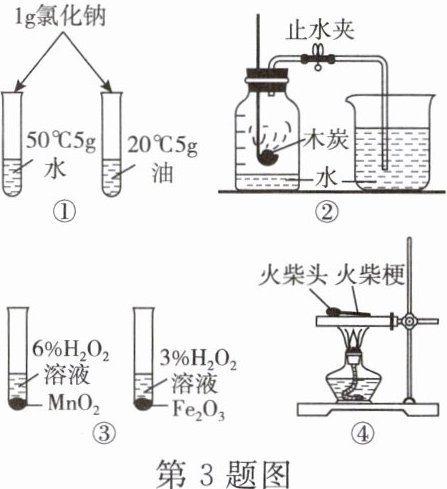 C.③不同催化剂对$H_2O_2$分解速率的影响
