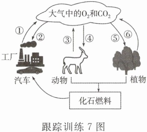 跟踪训练7 [2025·舟山校级模拟]氧循环和碳循环是自然界中的重要循环(如图),下列关于两种循环的分析,其中正确的是(